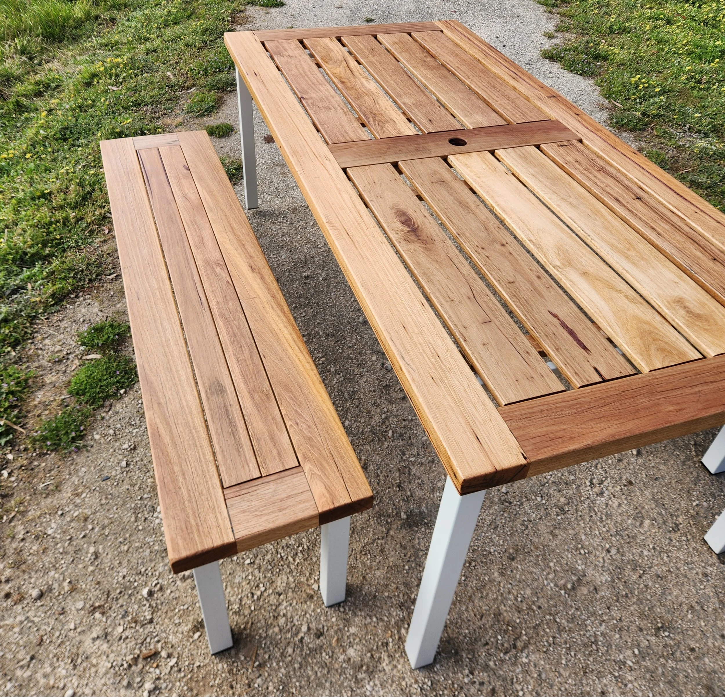 Stainless Steel Flooded Gum Outdoor Table & Bench Set