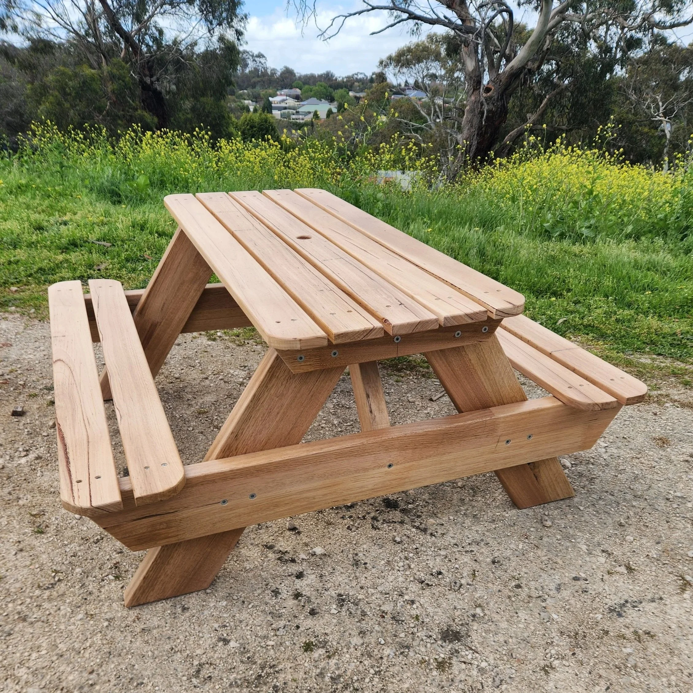 At the end of last year we were approached by a local primary school who had seen our kids picnic table and were interested in adding one to the playground for the kids to enjoy at recess and lunch. Like all of our products we make, this one was slightly different from the first and included an umbrella hole to provide same shade for the kids during their outdoor time.